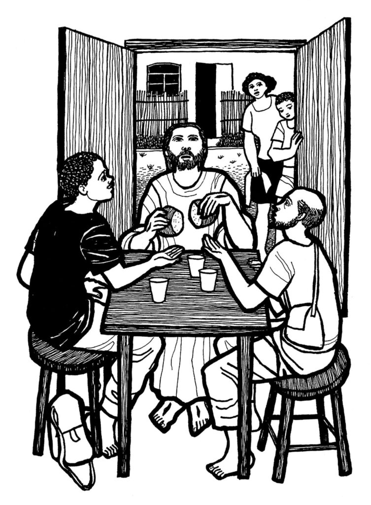 Mas o ponto culminante do relato de Emaús não está no discurso, por mais profundo que seja. Está no gesto. “Quando se sentou à mesa com eles, tomou o pão, pronunciou a bênção, partiu-o e lhes distribuía. Então os olhos deles se abriram e o reconheceram” (Lc 24,30-31). Não foi na eloquência, mas na fração do pão. Não foi na teoria, mas na comunhão.