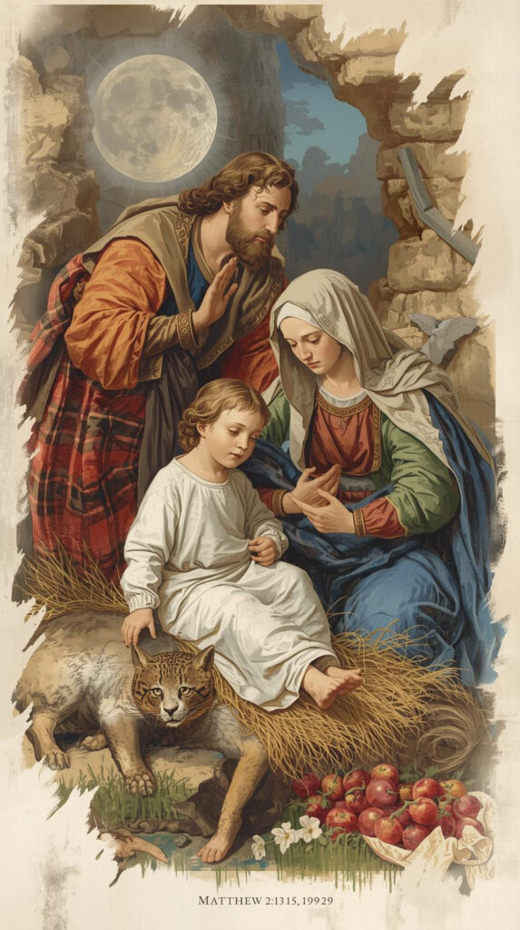 Mateus mostra a Sagrada Família marcada por provações, exílio e confiança em Deus. José, atento à voz divina, protege o Menino e Maria. A família não está isenta de dificuldades, mas é sustentada pela fé. - A Sabedoria do Amor Familiar (Primeira Leitura – Eclo 3,3-7.14-17a)