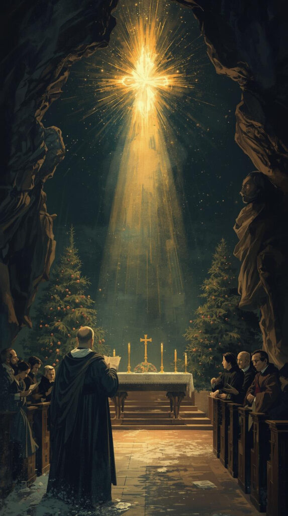 A Missa da Noite de Natal introduz a Igreja no mistério da luz que rompe a escuridão. Celebrada no silêncio da noite, ela proclama que Deus não espera o amanhecer da humanidade: Ele entra na história quando tudo parece envolto em sombras, revelando que a salvação é pura iniciativa do seu amor.